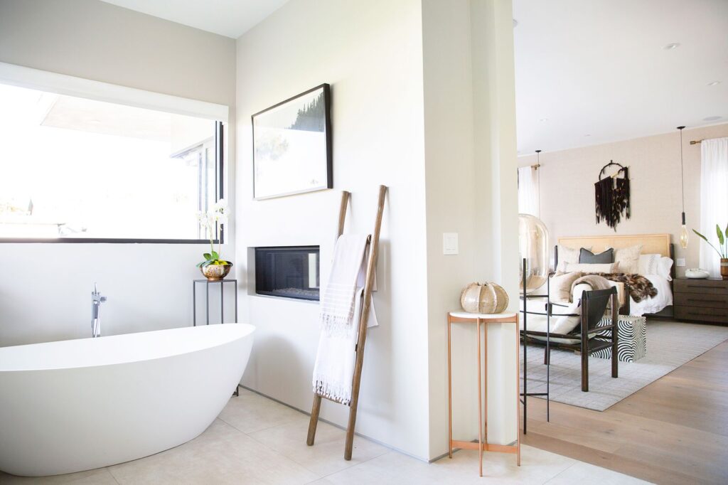 Try adding an extra feature for extra warm vibes if you’re starting from scratch. A gas fireplace next to the bathtub, in other words. Because the bathroom and bedroom share a wall in this Peti Lau-designed apartment, the connected fireplace insert brings warmth, flair, and romance to both sides.